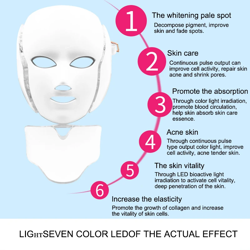 LED 7-color spectrometer light photon skin softener family mask spectrometer mask Neck Therapy Wrin