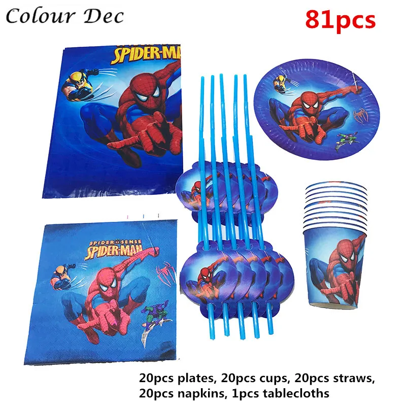 Best Quality 81Pcs/Lot Spider-Man Venom Theme Kids Birthday Party Kids Family Party Decorations strawCups Plates