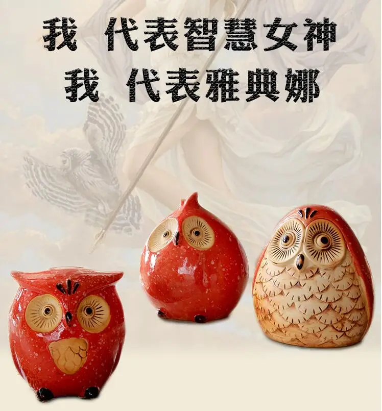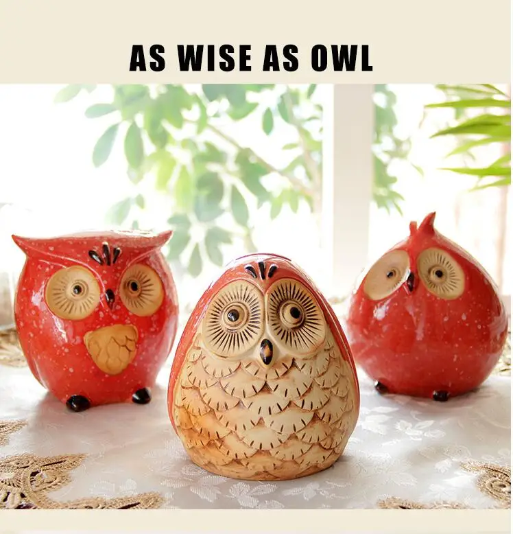 Hot Sale Owl ceramic ornaments animal family of three figurines decorations home decor desktop Coin Boxes ho