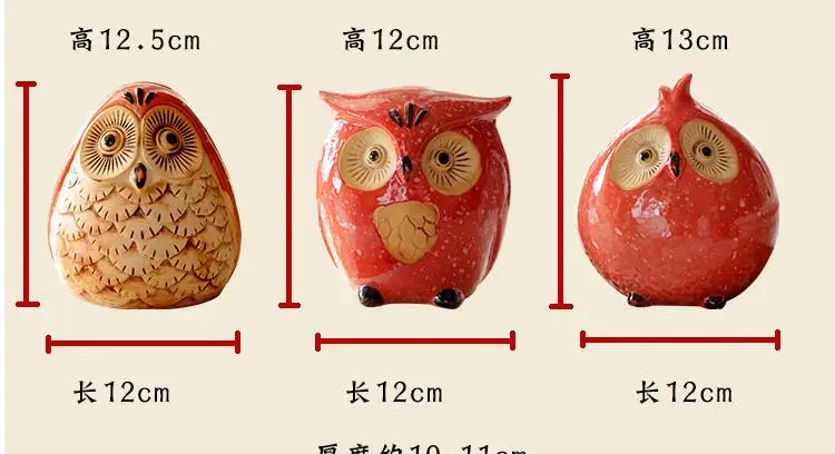 Owl ceramic ornaments animal family of three figurines decorations home decor desktop Coin Boxes ho