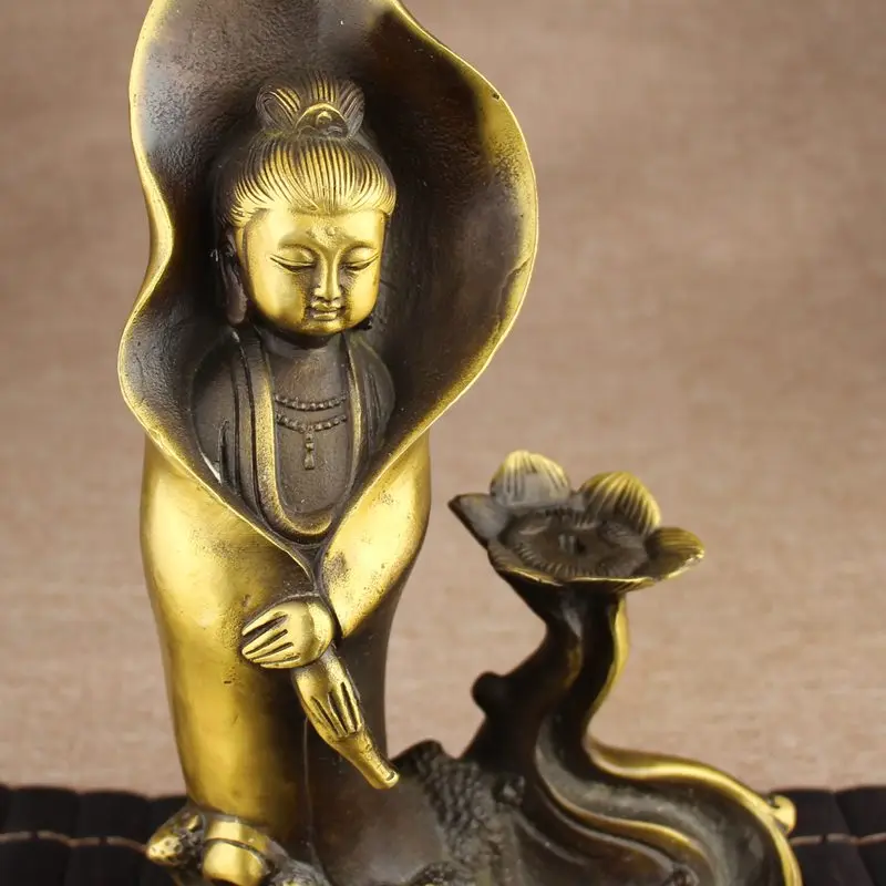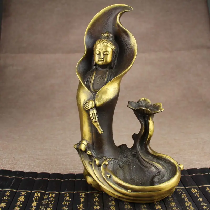 TNUKK Chinese copper handicrafts fengshui mercy Goddess guan-yin buddha statue vintage family decor