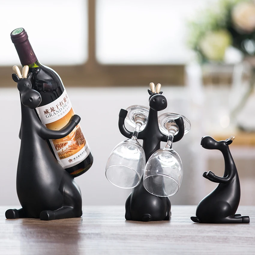 Modern Creative resin Red Wine Rack Bottle Holder creative Figurines & Miniatures deer family Furni